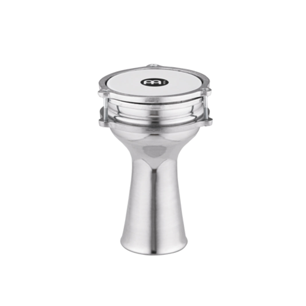 These Turkish style aluminium shell MEINL Darbukas are light in weight but big in tone. The miniature design measures 7-3/4 inches tall with a 4-1/4 inch synthetic head. They are easy to play and for their size they have a remarkable range of sound which will surprise you. Perfect for drum circles, street percussion or to keep on your desk or coffee table and are also a great gift idea. This plain shell model is also available with hand hammered, hand engraved, or lacquered aluminium shells.